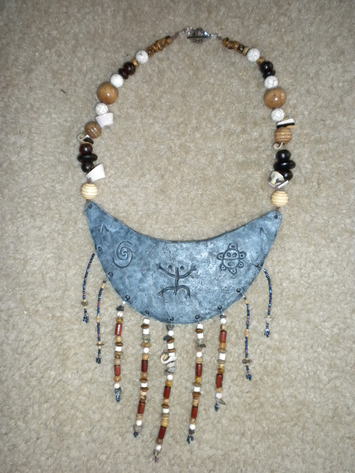 An amazing friend of mine asked for a taíno looking necklace for her Gallery Opening and I couldn’t resist the temptation in saying YES! She loved her necklace, the show was AMAZING, everything was great. I’ve gotten many compliments for this necklace and many people have asked me if I am selling it. Please know that I only made it for her. I can do a remake similar to this if you’d like. Just contact me.